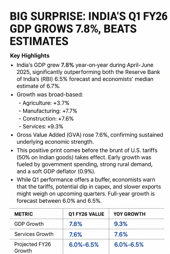Article – Big Surprise: India’s Q1 FY26 GDP grows 7.8%, beats estimates Post author:Chandan Singh Post published:August 29, 2025 Post category:FX-MARKET / services Jai Siya Ram Chandan Singh this is Chandan Singh from India. research technical analyst in financial market and helping investor or traders to generate knowleage with profit from financial market with having 17 years of experience! You Might Also Like NSE Spot “Nifty” Trading View & Signal DATE: 26-08-2024 August 26, 2024 Re: XAUUSD-Gold Trading View & Signal DATE: 16-06-2025 June 16, 2025 NSE F&O February “Bank Nifty Index” Trading Signal DATE: 20-01-2025 January 20, 2025