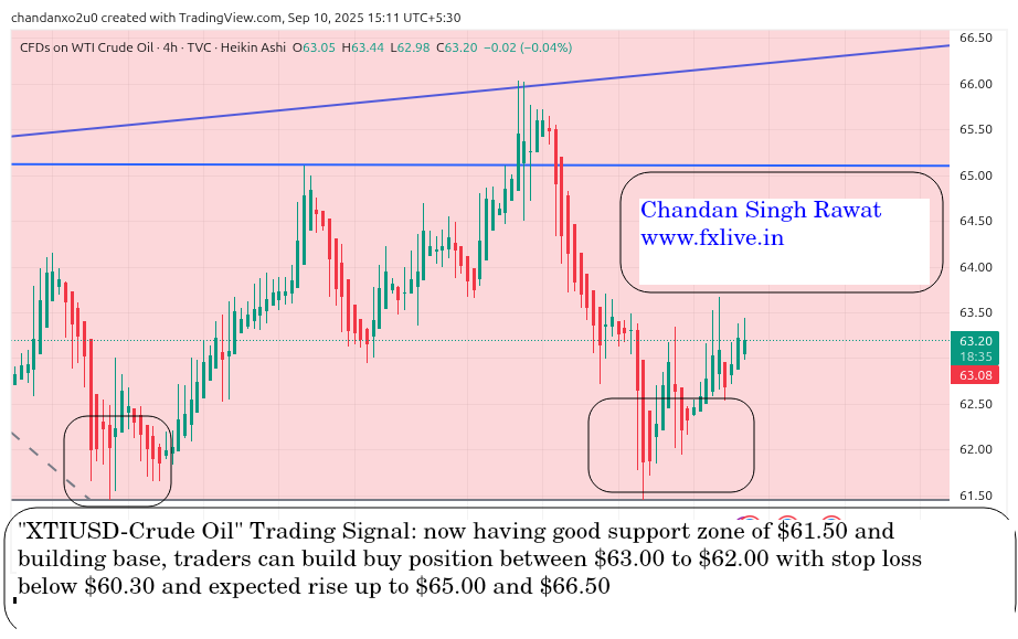 “XTIUSD-Crude Oil” Trading Signal: now having good support zone of $61.50 and building base, traders can build buy position between $63.00 to $62.00 with stop loss below $60.30 and expected rise up to $65.00 and $66.50
